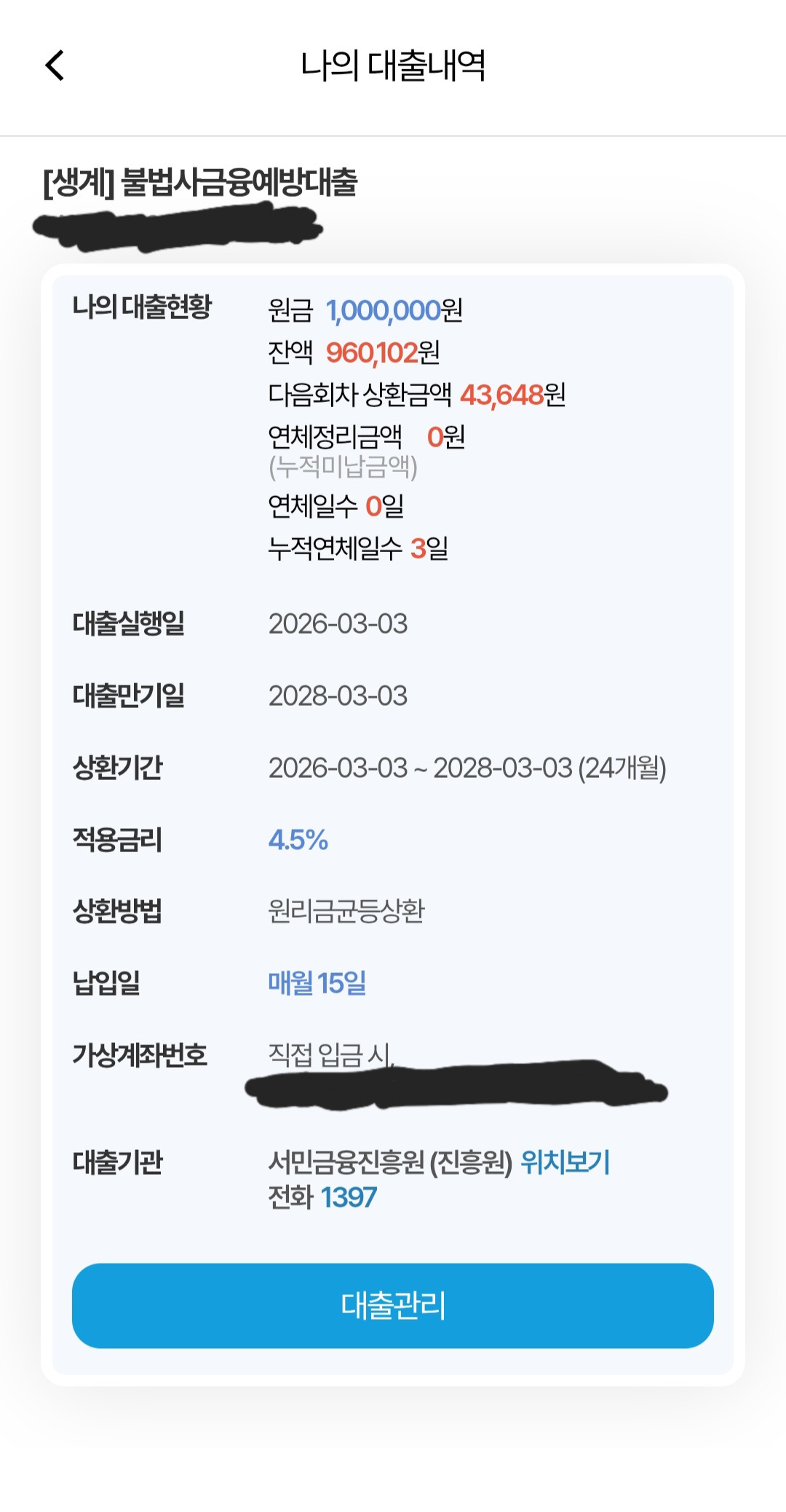 처음에는 이자가 다소 부담스러웠지만, 당시 서민금융진흥원 금융교육을 이수하여 0.5%p를 인하 받았었고 여러 번의 소액생계비 대출을 이용하면서 6개월 이상 꾸준히 성실 상환하여 전액 상환을 완료하는 이력을 쌓았습니다. 그 결과, 올해 3월에는 무려 연 4.5%라는 매우 낮은 우대 금리로 모바일 비대면 재대출을 받는 데 성공했습니다. 처음의 12.5%에 절대로 겁먹거나 부담갖지 마세요. 성실하게 꾸준히 상환하여 50% 페이백을 받고, 4.5% 재대출 혜택까지도 누리시길 바랍니다.